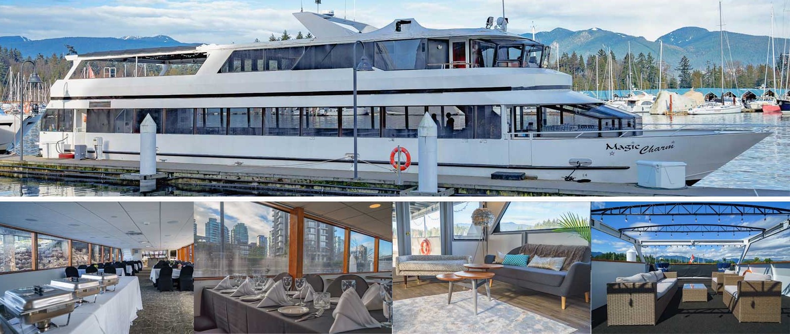 Magic Yacht Charters' fleet is spectacularly located at the Westin Bayshore Marina in Coal Harbour; the Magic Spirit and the Magic Charm are sleek, updated and well-appointed luxury yachts uniquely suited to hosting an event that leaves a lasting impression, be it for business or pleasure.